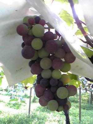 完熟したベリーAをテースティングするのが楽しみです(笑)まだ、色がきていない房がほとんどで、青い実はかなり酸っぱかったです…。