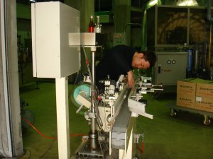 次はクーさん。180ml用にラベラーを調整している姿です。