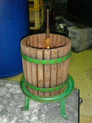 むかーし、むかしから、酒折には木の枠で出来たレトロな搾汁機があったそうな。